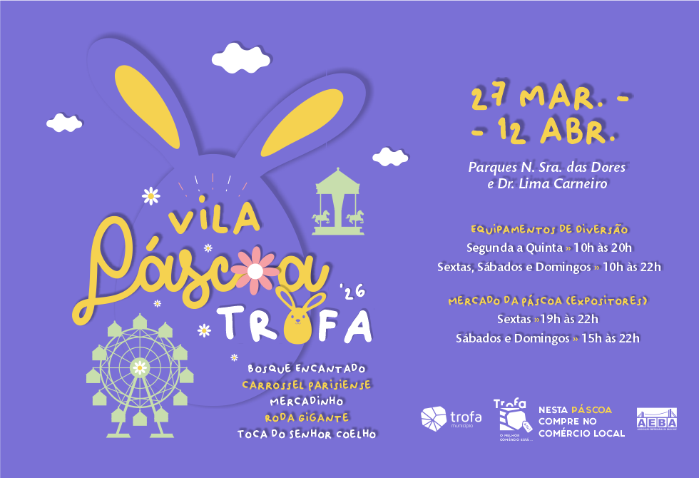 “A Vila Páscoa Trofa 2026 é um projeto pensado para todas as idades, que une famílias, comércio e cultura local. Queremos que este evento seja uma oportunidade de celebração da Páscoa com muita alegria e animação, mas também um momento para valorizar os nossos comerciantes. Convidamos todos a visitar os parques e viver a magia que preparamos para esta primeira edição”, afirma o Presidente da Câmara Municipal da Trofa, Sérgio Araújo.